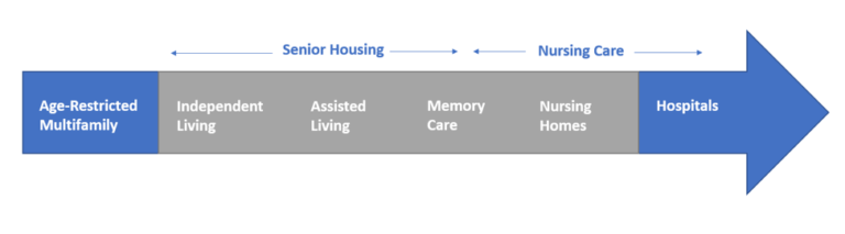 One would guess that institutional investing and the smart money would be quick to the chase in profiting from this growth sector. Data across the board from adult properties suggests that they have generally been filled with residents, with most performing very well during the pandemic. According to Cody Tremper, managing director for JLL Capital Markets, “We are seeing assets in core locations achieving pricing levels that have never been hit before for this product type.” The spectrum of senior housing options ranges from age-restricted multifamily all the way to nursing homes and hospitals, depending on the acuity of care required.